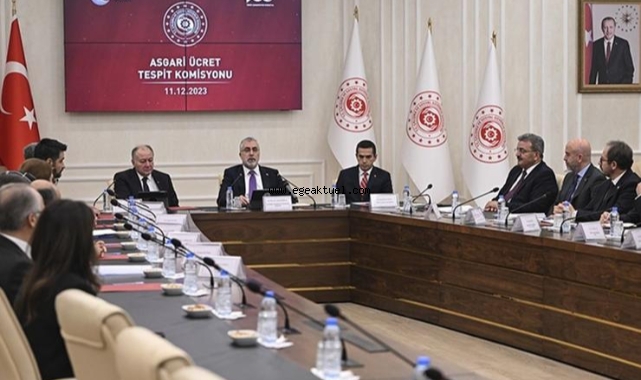 Toplantıya dakikalar kala Çalışma ve Sosyal Güvenlik Bakanı Vedat Işıkhan ve Erdoğan'dan asgari ücrete yönelik açıklamalar geldi.İşçi, işveren ve hükümet temsilcilerinden oluşan Asgari Ücret Tespit Komisyonu 2025'te geçerli olacak asgari ücreti belirleme çalışmaları kapsamında ilk kez bugün saat 16.00'da Çalışma ve Sosyal Güvenlik Bakanlığı'nın ev sahipliğinde toplandı.Böylece doğrudan 7 milyona yakın çalışanı, dolaylı ise toplumun tamamını ilgilendiren yeni asgari ücretin belirlenmesine yönelik süreç bugün resmi olarak başladı.Toplantıda, işveren tarafını Türkiye İşveren Sendikaları Konfederasyonu (TİSK), işçi tarafını ise en fazla üyeye sahip konfederasyon olduğu için TÜRK-İŞ temsil ediyor.Ayrıca komisyonda 5 işçi de yer alıyor. İşçi heyetinde bu yıl aşçı Selma Sayın, kuaför Nihan Koçak, Karayolları'nda taşeron işçi Durmuş Öztürk ve basın mensubu Sezer Özseven yer alıyor.İlk toplantıda henüz rakam telaffuz edilmesi beklenmese de açıklamalardan alınacak sinyaller bekleniyor.