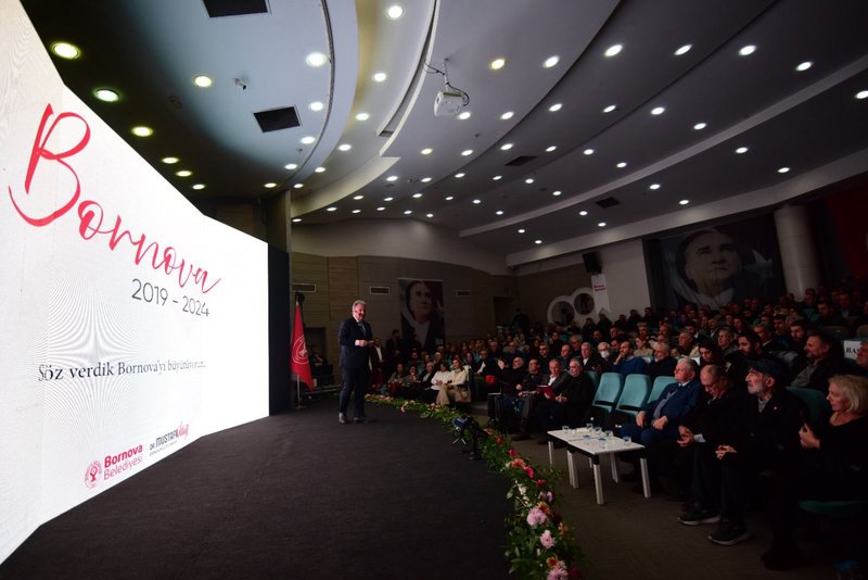 Kamunun en büyük yükünün kiralık araçlar olduğunu belirten Başkan İduğ: "68 araç ile başladık, 147’ye geldi. Bugün bence kamunun en büyük yükü kiralık araçlar. Çalışan maliyeti evet inanılmaz noktaya geldi ama bu maliyetler de bütçenin 15’ini oluşturuyor. Toplam gider içinde yüzde 65 personel gideri. Yüzde 35 ile tedarikleri karşılamanız mümkün değil. Gelirinizi artıramıyorsanız giderinizi aşağıya çekeceksiniz. Bugün bir kamyonun kirası 130 bin TL-150 bin TL. 350 ile 400 milyon TL araç kirası ödeyeceksiniz. Hangi belediye ödeyebilir? Bir şey daha kazandık; 400 milyon TL varlığımız oldu. Kira ödemiyor, borcu var mı, yok! Devlet Malzeme Ofisi’nden aldık araçlarımızı. Bornova hesap verebilir bir belediye" dedi.Saate 160 ton asfalt ürettiklerini belirten Bornova Belediye Başkanı Mustafa İduğ: "Saatte 160 ton asfalt üretiyoruz. 7 ilçeye asfalt satıyoruz. Böyle bir tesis 60-70 milyon TL. Biz 1 senede parasını geri aldık. Hem ürettik hem sattık. 1800 TL’ye satın alırken, 900 TL’ye ürettik. 2022 yılında 40 bin ton, 2023 yılı 70 bin ton asfalt üretildi. Bütün firmalar kazıyor. Bu böyle olmaz dedik. Şikayet Bornova Belediyesi’ne geliyor. Hemen giriştik, asfalt üretiyoruz bir şirket kurduk. Kurumlarla anlaşmalar yaptık çukurları kapatıp paralarını tahsil ediyoruz" dedi.Bornova'daki öğrencilere yönelik açıklamalarda bulunan Başkan İduğ: " Biz sosyal belediyecilik anlayışı ile kız yurtlarını artırdık. Biri bitti. Toplamda 700 öğrenciye hizmet veren bir çalışma içinde olacağız. Çamdibi Yarı Olimpik Kapalı Yüzme Havuzu’nu oraya kurduk. 5 bin üzerinde çocuğun spor yapmasını sağladık. Naldöken Pazar Yeri’nde esnafın durumu kötüydü. Sırf Pazar yeri ile kalmıyor. Burayı Batıçim’den satın aldık. Bornova’nın mülkü oldu. Biz fonksiyonel bir çalışma yaptık. Özkanlar Pazar yeri burası kapalıydı. Burayı 2019 sonunda çatık. Haftanın 5 günü pazar yeri oldu" dedi.Dernekleri bir araya getirdiklerini belirten Bornova Belediye Başkanı Mustafa İduğ: " Atatürk Sivil Toplum Kuruluşları Yerleşkesi’ni ilk geldiğimizde kültür merkezi olarak kullanılan yeri sivil toplum örgüt merkezi yaptık. ADD burada, 49 tane kadın derneği, sektörel dernekler burada. 452 olduğunu biliyorum. Burada sadece para mı önemli. Burada sinerji önemli. Derneklerin bir araya gelerek iş yapması önemli. Burada inanılmaz bir çalışma var" dedi.Kreş ve taziye evlerini açtıklarını belirten Başkan İduğ: " Bir çocuğun kreşe gittiğindeki aylık ücreti 8, 10 bin TL. Burada 14 tane çocuk oyun aktivite merkezi var. 23 tane kreş tamamlandı. Kalanları da hizmete sokacağız. Ücret almıyoruz. İşte sosyal devletin iyi örneklerinden bir tanesi. Bornova’nın nüfusu gündüz 1 milyon. Öğrenciler var, hastaneye gelen ziyaretçiler var, sanayi sitlerine gelenler var. Bornova aslında İzmir’in kalbi. Türkiye’ye hizmet eden ayakkabıcılar sitesi burada. Lojistik burada. Nakliyeciler burada. 500 bin gece burada yatan Bornovalı onların da yükünü çekiyor. İller Bankası’ndan aldığımız para 470 bin kişiye göre. Taziye için gelenler nerede toplanacaklar. 18 tane taziye evini vatandaşların kullanımına hazır hale getirdik" dedi.Mesleği olanları işe yerleştirdiklerini belirten Başkan Mustafa İduğ: " Mesleği olanları işe yerleştiriyoruz. İş arayanlarla işçi arayanları bir araya getiriyoruz. Nitelikli insan çalışması. Biz geldik. Bornova’nın 2 bin kişilik kapasitesi var. 500 kişiyi alırsanız 2 binin maaşını ödeyemezsiniz. Altın Bilezik projesi ile insan kaynakları ile çalışmak isteyenleri bir araya getirdik. 21 bin kişiyi işe yönlendirdik. Bu ülkede işsizlik var mı, ben merak ediyorum. Bu kadar insan iş arıyor. Otele gidiyor çalıştıracak insan bulamıyorlar, mesleksiz insan çok. O yüzden bu insanların ortaokul sonrasında eğitim alması lazım" dedi.