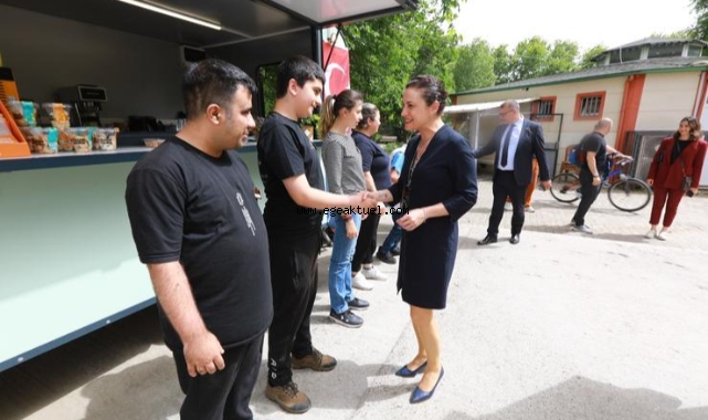 Efes Selçuk Belediye Başkanı Filiz Ceritoğlu Sengel, Engelsiz Kafe’de çalışan gençleri ziyaret etti.
