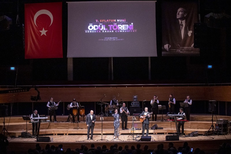 Konak Belediye Başkanı ve İzmir Büyükşehir Belediye Başkan Aday Adayı Abdül Batur, “İzmir her zaman Cumhuriyetin, özgürlüğün meşalesidir. Bizler her zaman ve her yerde Cumhuriyet ve Atatürk diye haykırmaya, birlikte ve dayanışma içinde mücadeleye devam edeceğiz” dedi. İzmirlileri 14 Ocak’ta Ankara, Tandoğan’da yapılacak mitinge de davet eden Başkan Batur, “Bizler, tüm Cumhuriyet Halk Partisi üyeleri ve tüm vatanseverler 14 Ocak saat 13.00’te Ankara’da buluşacağız. Buradan tüm hemşehrilerimizi demokrasiye, anayasaya, geleceğimize, emeğimize, ekmeğimize sahip çıkmak için mitingimize davet ediyorum” sözleriyle çağrı yaptı. İzmir Gazeteciler Cemiyeti Başkanı Dilek Gappi de, “Bu gece, bir ödül töreni olarak görülür ama özünde çizgilere dahi tahammül edemeyenlere karşı bir çıkıştır. Basına karşı tahakküme başkaldırıdır. Eflatun Nuri Karikatür Yarışması olarak görünür ama özünde Mustafa Kemal Atatürk ve Hasan Tahsin’in bağımsızlık meşalesini sonuna kadar taşıyacağımızı haykırmaktır” diye konuştu.Konak Belediyesi ve İzmir Gazeteciler Cemiyeti’nin (İGC), bu yıl 7’ncisini düzenlediği Eflatun Nuri Ulusal Karikatür Yarışması Ödül Töreni, Ahmet Adnan Saygun Sanat Merkezi’nde (AASSM) gerçekleşti. Bu yılki teması “Sonsuza Kadar Cumhuriyet” olan yarışmanın, gelenek olduğu üzere 10 Ocak Çalışan Gazeteciler Günü’nde gerçekleştirilen ödül törenine Konak Belediye Başkanı Abdül Batur’la birlikte İzmir Gazeteciler Cemiyeti Başkanı Dilek Gappi ve yönetim kurulu üyeleri, CHP İzmir İl yönetim kurulu üyeleri, CHP Konak İlçe Başkanı Ozan Ali İlgazi ve yönetim kurulu üyeleri, İzmir Kent Konseyi Başkanı Nilay Kökkılınç, İGC önceki dönem Başkanı Misket Dikmen, Konak Belediyesi Meclis Üyeleri, İzmir İl Kültür ve Turizm Müdürlüğü temsilcileri, Eflatun Nuri’nin ailesi, adına portre özel ödülü düzenlenen Mustafa Bora’nın ailesi, demokratik kitle örgütleri, sivil toplum kuruluşları ile sendikaların başkan ve temsilcileri, kadın dernekleri başkan ve temsilcileri, muhtarlar ve karikatür sanatçıları başta olmak üzere İzmir sanat çevresi katıldı. Açılış konuşmalarıyla başlayan ödül töreninde, ödüller sahiplerini bulurken Aegean Band de muhteşem bir konserle ödül gecesini unutulmaz kıldı.