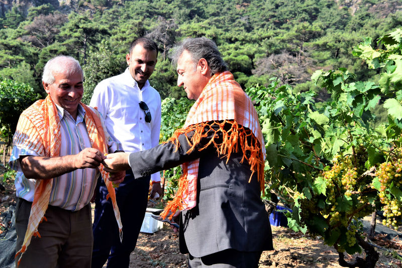 Bornova Belediyesi’nin Çamiçi Mahallesi’ndeki misket üzümü bağında hasat bereketi yaşandı. Bornova Belediye Başkanı Dr. Mustafa İduğ, misket salkımlarını işçilerle birlikte topladı.
