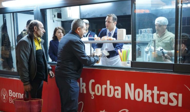 Bornova Belediyesi, soğuk kış günlerinde Bornova Metro çıkışında sabah saatlerinde sıcak çorba, su ve ekmek ikramıyla vatandaşlara destek oluyor.