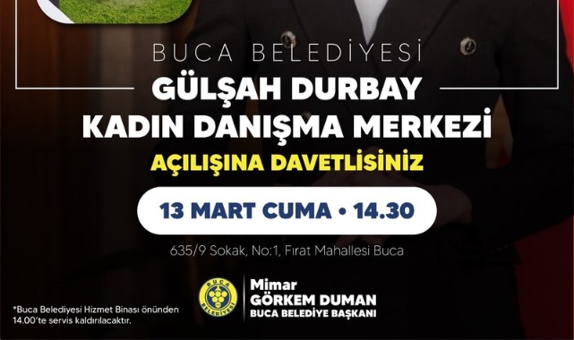 Buca Belediyesi, merhum Şehzadeler Belediye Başkanı Gülşah Durbay’ın adını verdiği Kadın Danışma Merkezi’ni 13 Mart’ta (yarın) hizmete açacak.