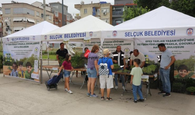 Efes Tarlası Yaşam Köyü’nde üretilen fideler, Efes Selçuk’un DMD kas hastası çocukları Batın, Efehan ve Göktuğ için Aslanlı Havuz yanında bulunan alanda satışa sunuldu.