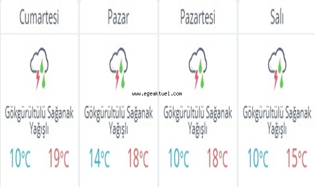 İzmir'de , cumartesi ve pazar günleri gök gürültülü sağanak yağışlı hava bekleniyor.