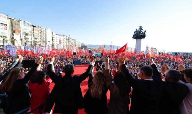 İzmir Büyükşehir Belediye Başkanı Dr. Cemil Tugay, Cumhuriyet Halk Partisi (CHP) Genel Başkanı Özgür Özel’in katılımıyla Gündoğdu Meydanı’nda düzenlenen “Millet İradesine Sahip Çıkıyor İzmir Mitingi”nde yurttaşlara hitap etti.