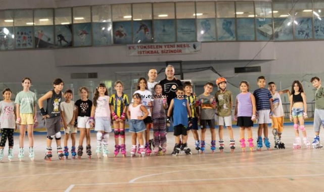 Yazın farklı spor branşlarında da hizmet sunulabilmesi amacıyla Bornova'daki Âşık Veysel Rekreasyon Alanı'nda bulunan Buz Sporları Salonu'nun zeminini yenileyen İzmir Büyükşehir Belediyesi’nin bu yıl ilk kez hayata geçirdiği tekerlekli paten kursları sürüyor. Çocuklar da veliler de eğitimden memnun.
