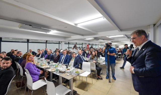 İzmir Büyükşehir Belediye Başkanı Dr. Cemil Tugay’ın ev sahipliğinde meclis toplantısının ardından düzenlenen iftar yemeğinde tüm partilerin grup başkan vekilleri ve meclis üyeleri oruçlarını açtı.İzmir Büyükşehir Belediye Başkanı Dr. Cemil Tugay, mart ayı olağan meclis toplantısının birinci birleşiminin ardından iftar yemeğine ev sahipliği yaptı. İftara İzmir Büyükşehir Belediyesi Başkan Vekili Dr. Levent Yıldır, Genel Sekreter Yardımcısı Çağatay Güç, Meclis Başkan Vekili Altan İnanç, CHP Grup Sözcüsü Elvin Sönmez Güler, AK Parti Grup Başkan Vekili Hakan Yıldız, MHP Grup Başkan Vekili Bahadır Altınkeser, ilçe belediye başkanları ve meclis üyeleri katıldı.İftar yemeğinde konuşan Başkan Tugay, “Ramazanınız kutlu olsun, mübarek olsun. İnşallah hayırlara vesile olsun. Hepimizin şehrimizin iyiliği üzerine, insanlarımızın iyiliği üzerine duaları olduğuna eminim. Hayır dualarınızın kabul olmasını diliyorum. Güzel İzmir’imize iyilikler gelmesini yürekten diliyoruz. Beraber çalışıyoruz. Zaman zaman birbirimizi eleştiriyoruz. Zaman zaman o anki duygularla birbirimize bir şeyler söylüyoruz. İzmir için iyi niyetle çalıştığımıza inandığımız arkadaşlarımızın bana yönelik sözleri itibariyle kendi hakkımı böyle bir zamanda helal ediyorum. Bundan sonraki zamanda da daha pozitif bir iletişimle, ortak çalışma kültürünü daha da geliştirerek şehrimize hizmet etmeyi diliyorum. Allah hepimize yardımcı olsun. Şehrimiz için daha güzel şeyler yapabilelim” diye konuştu.