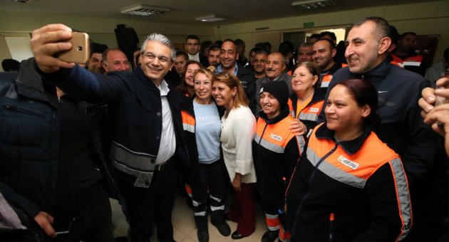 Belediye Şantiyesi’nde taşeron işçilerle bir araya gelen Karşıyaka Belediye Başkanı Hüseyin Mutlu Akpınar “Eski mahkumların topluma kazandırılması, hükümetin de önemle üzerinde durduğu bir konu. Ancak son KHK ile bu durum ortadan kalkıyor. Geçmişte kasıtlı olarak suç işleyen ve 1 yıldan fazla hüküm giyen arkadaşlarımızla yollarımızı ayırmak zorundayız. Bu hem eşitlik ilkesine hem de toplum vicdanına aykırı bir durum. Bu çalışanları kapının önüne koymak, ekmeklerini kesmek, onlara yeniden “Git, suç işle” demekle eşdeğer. Buna izin verilmemesi lazım. Bakanlığın, bu itirazımızı dikkate alacağına ve yanlıştan döneceğine eminim” diye konuştu.