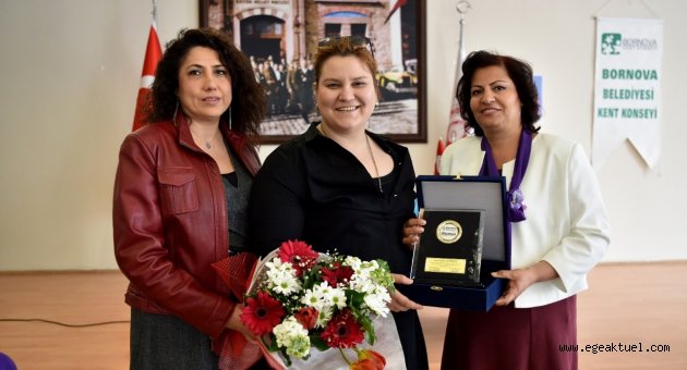 Film gösterimi ve söyleşinin ardından Bornova Belediye Başkan Yardımcısı Belgüzar Başer Köpüklü ile Kent Konseyi Kadın Meclisi Başkanı Raziye Sarısaltık, Gülten Taranç’a plaket ve çiçek vererek teşekkür etti.