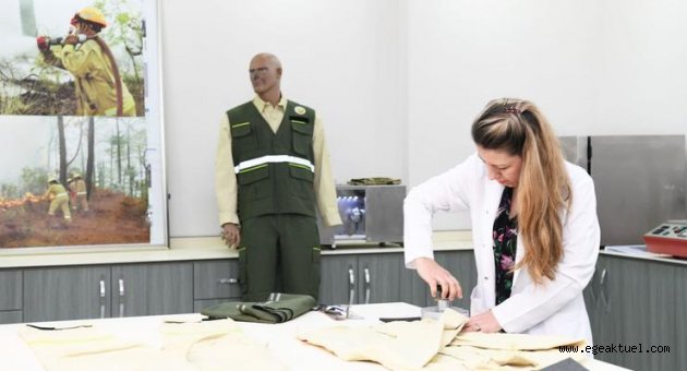 Orman yangınlarında görev alan ekipler, Ege Üniversitesi uzmanlarının onayından geçen kıyafetler ile yangınla mücadele ediyorlar.