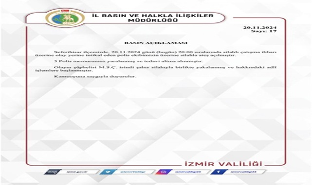Kahpe saldırının ardından açıklama yapan İzmir Valisi Dr. Süleyman Elban, derhal yapılan operasyonla saldırganın silahıyla birlikte yakalandığını duyurdu.