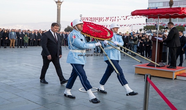 Türkiye Cumhuriyeti’nin kurucusu Ulu Önder Gazi Mustafa Kemal Atatürk, aramızdan ayrılışının 86’ncı yılında özlemle anılıyor. Gün boyu sürecek anma etkinlikleri, Cumhuriyet Meydanı’nda yapılan anma töreniyle başladı. İzmir Valiliği, Ege Ordusu ve Garnizon Komutanlığı ve İzmir Büyükşehir Belediyesi adına Atatürk Anıtı’na çelenk sunulmasıyla başlayan törene; İzmir Büyükşehir Belediye Başkanı Dr. Cemil Tugay, İzmir Valisi Dr. Süleyman Elban, Ege Ordusu ve Garnizon Komutanı Orgeneral İrfan Özsert, siyasi parti temsilcileri, milletvekilleri, sivil toplum kuruluşu, oda ve derneklerin başkanları ile temsilcileri ve yurttaşlar katıldı.