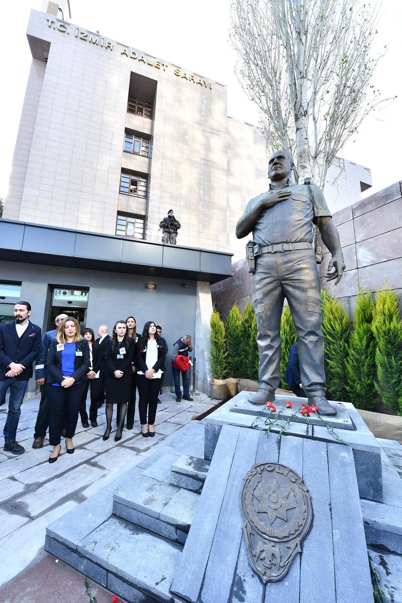 İzmirliler, 5 Ocak 2017 günü İzmir Adliyesi önünde bomba yüklü araçla gelen teröristlerle çatışmaya girerek olası bir katliamı önleyen ve onları durdurmak için gözünü kırpmadan şehit düşen kahraman polis memuru Fethi Sekin’i ve aynı saldırıda şehit düşen mübaşir Musa Can’ı unutmadı. İzmir Adliyesi’nde düzenlenen anma törenin ardından, İzmir Büyükşehir Belediyesi’nin Fethi Sekin için yarışmayla belirleyip heykeltraş Can Akdaş'a yaptırdığı anıt heykel de açıldı. Bayraklı Adliyesi içinde düzenlen törene İçişleri Bakanı Süleyman Soylu, Adalet Bakanı Abdülhamit Gül, Emniyet Genel Müdürü Selami Altınok, İzmir Valisi Erol Ayyıldız, Ege Ordu Komunatı Orgeneral Abdullah Recep, İzmir Büyükşehir Belediye Başkanı Aziz Kocaoğlu, İzmir Cumhuriyet Başsavcısı Mustafa Doğru, İzmir Barosu Başkanı Aydın Özcan, İzmir milletvekilleri, ilçe belediye başkanları, Şehit Fethi Sekin’in eşi Rabia Sekin, babası Mehmet Zeki Sekin, Musa Can’ın eşi Mecbure Can, şehitlerin aileleri ve yakınları, adliye personeli ve avukatlar katıldı. Saygı duruşu ve İstiklal Marşı ile birlikte başlayan anma töreninde Fethi Sekin ve Musa Can için hazırlanan belgeselin ardından teröristlerle göğüs göğüse çarpışan Fethi Sekin’in video görüntüleri izlendi. Fethi Sekin ve Musa Can için yazılan adliye çalışanlarının da seslendirdiği “sana yüce yaradan cennetten yer ayırmış” isimli şarkının klibi duygu lu anlar yaşattı. Törene katılanlar gözyaşlarına hakim olamadı.