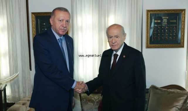Bahçeli, Erdoğan'ı kapıda karşıladı.Görüşmenin; MHP liderinin, TBMM'nin yeni yasama yılı açılışı resepsiyonundaki "Yeni dönem" sözlerinin ardından gerçekleşmesi dikkat çekiyor.