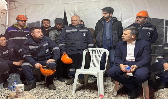 Madencilerin direnişi devam ederken, TİP Genel Başkanı Erkan Baş, TİP Ankara İl Başkanı Fırat Çoban ve TİP Ankara İl Örgütü yöneticileri de direniş alanını ziyaret ederek işçilere destek verdi.