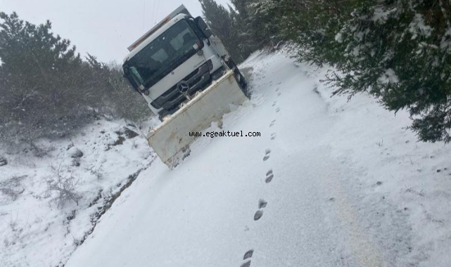 İzmir Büyükşehir Belediyesi ekipleri, şehrin yüksek kesimlerinde etkisini gösteren kar yağışı nedeniyle kapanan yolları açık tutmak için çalışmalarını kesintisiz sürdürüyor.